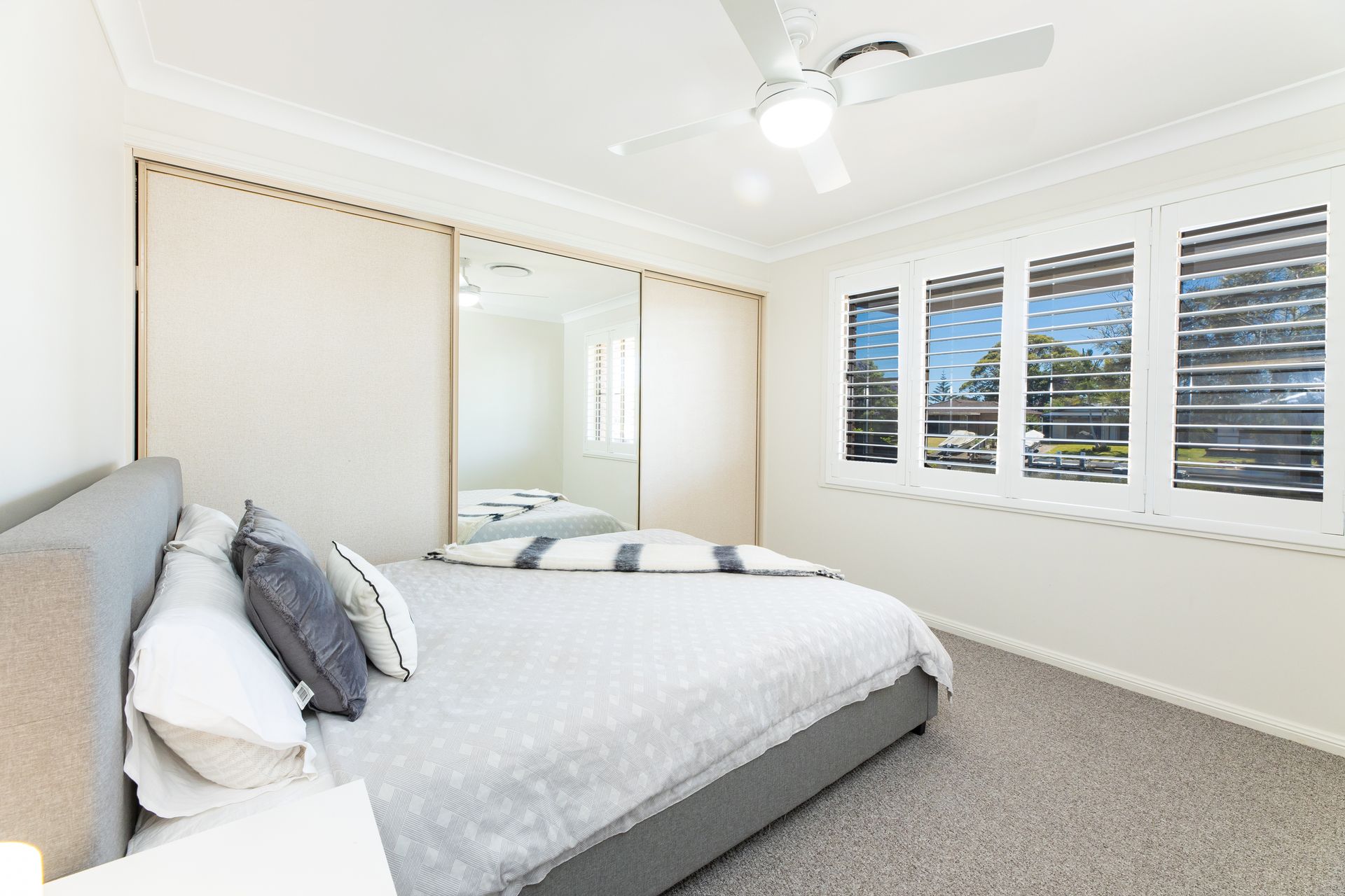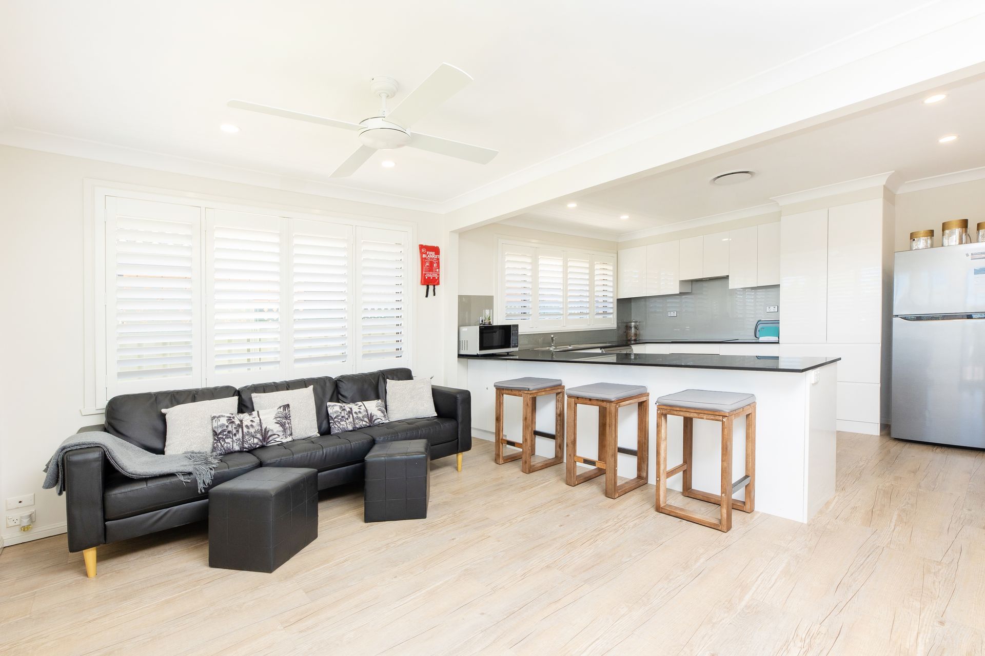 Master bedroom has a king bed with comfortable queen beds with bedside tables in bedroom 2 and 3 room with wireless phone chargers, ceiling fans and built in wardrobes. You’ll feel the serenity of the water ways whilst preparing food in the kitchen with glorious waterfront views of the canal. The kitchen boasts a modern appeal with dishwasher, microwave and electric cooking appliances. Feel comfort whilst watching the boats pass as you enjoy food at the outdoor dining seating.