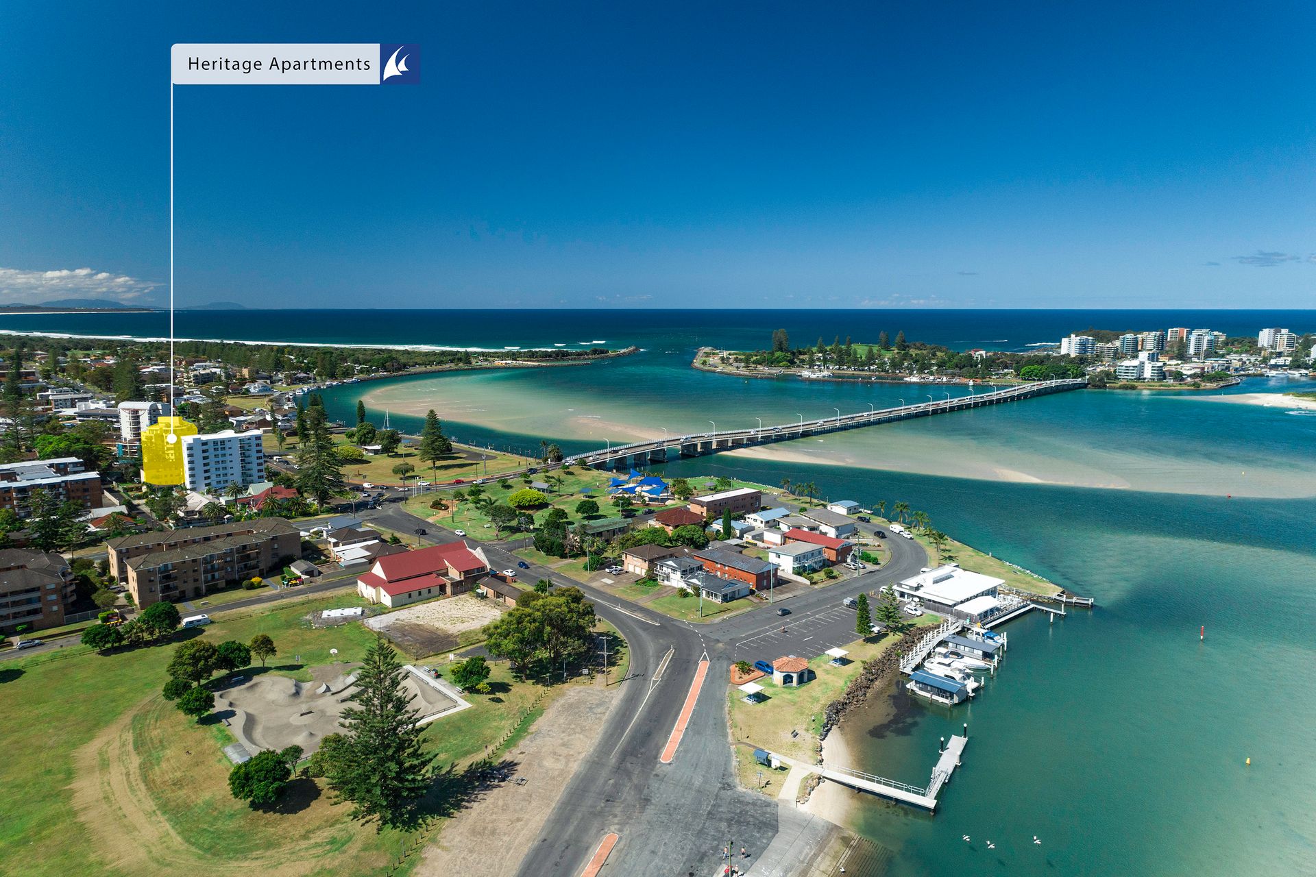 On the third floor of the Heritage Apartments—perfectly positioned at the foot of the bridge that links Tuncurry and Forster—you’ll enjoy sweeping 180-degree views of the sparkling waterways.