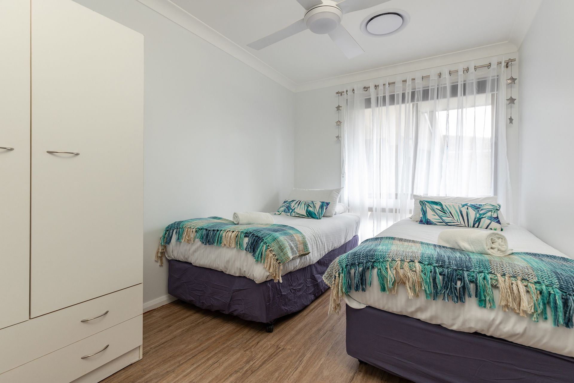 The three bedrooms have all of the beds made up with linens and the two bathrooms ready with towels, just don't forget to pack your own beach towels to make use of the waterways or Forster nearby beaches.