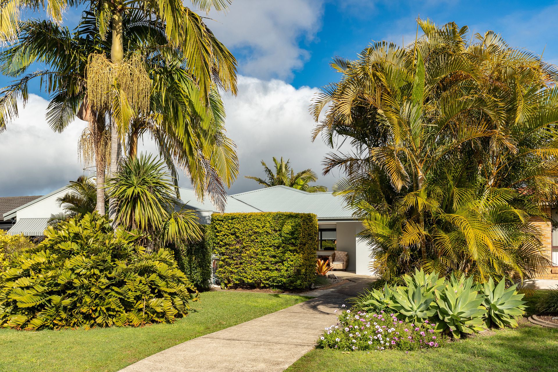With ducted air conditioning and ceiling fans throughout, you wont have a problem keeping cool on a hot day, and with the open plan living, dining and kitchen creates a great communal space that flows right out onto the under cover deck and grassed backyard with palm trees.