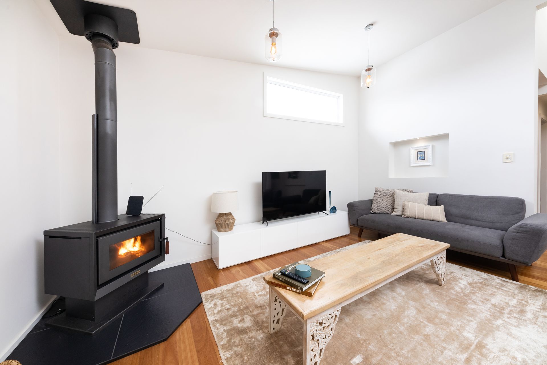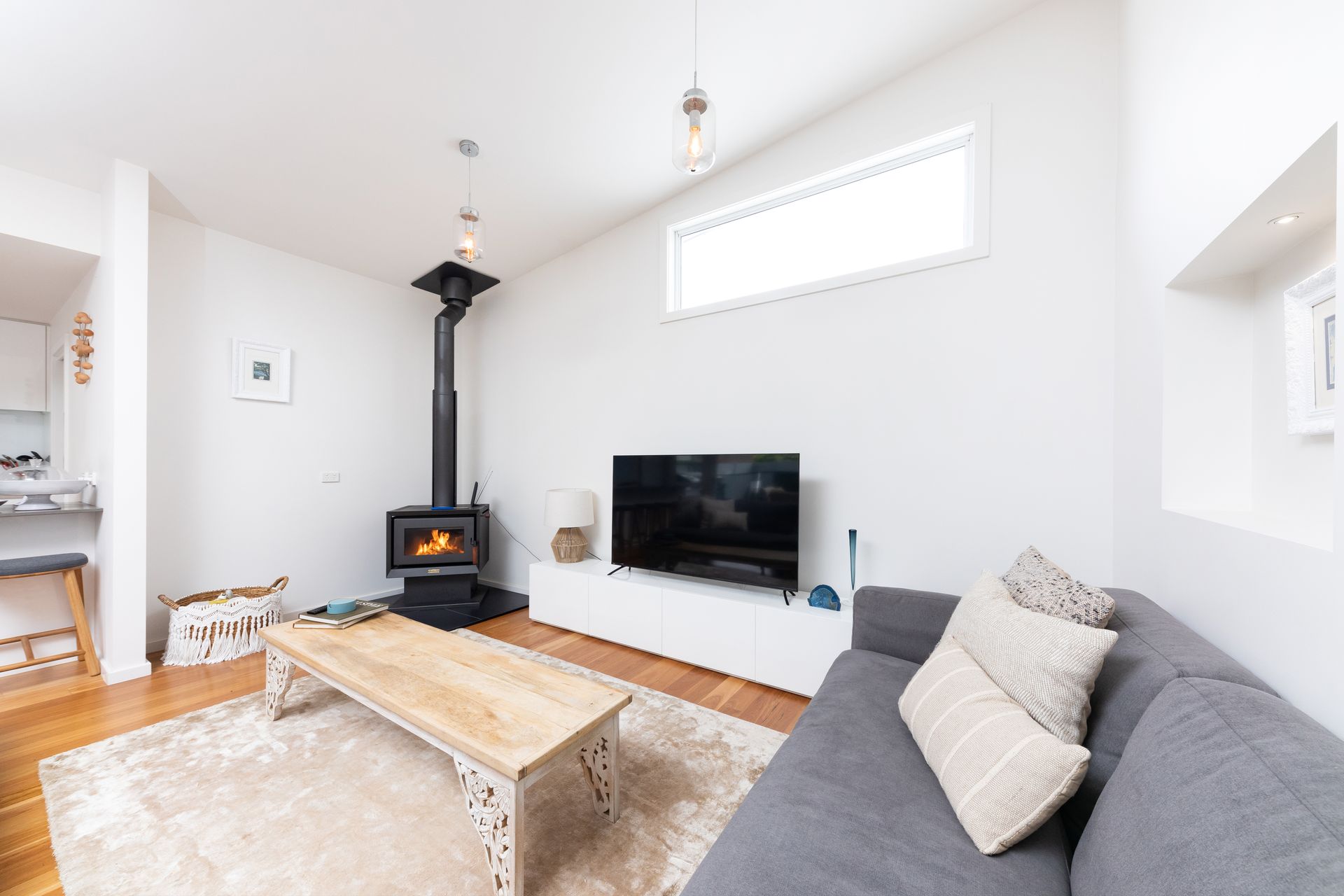 The master bedroom has a king size bed, well appointed ensuite with bath, built in robes and ceiling fan. The second bedroom has a queen bed and large built in robe and ceiling fan. The third bedroom has a double bunk with separate king single and trundle. The living area has a cosy, warm fireplace with a spacious oversized modular lounge to curl up on and the dining area opens out to the private, undercover outdoor lounge area and BBQ. Stay cool this summer, all bedrooms and the upstairs living area have reverse-cycle air conditioning.