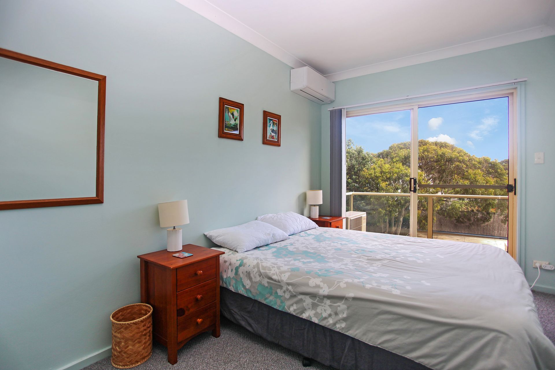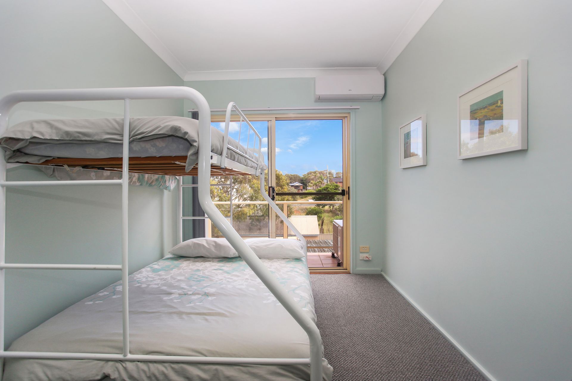 The upstairs area has two sun filled bedrooms both with air conditioning, built ins and both bedrooms access to the small balcony. Bedroom one is complete with a queen bed, while bedroom 2 has a trio bunk (double on the bottom and single on the top) and a second television. There is an internal laundry and bathroom. A covered carport is located in the rear parking area.