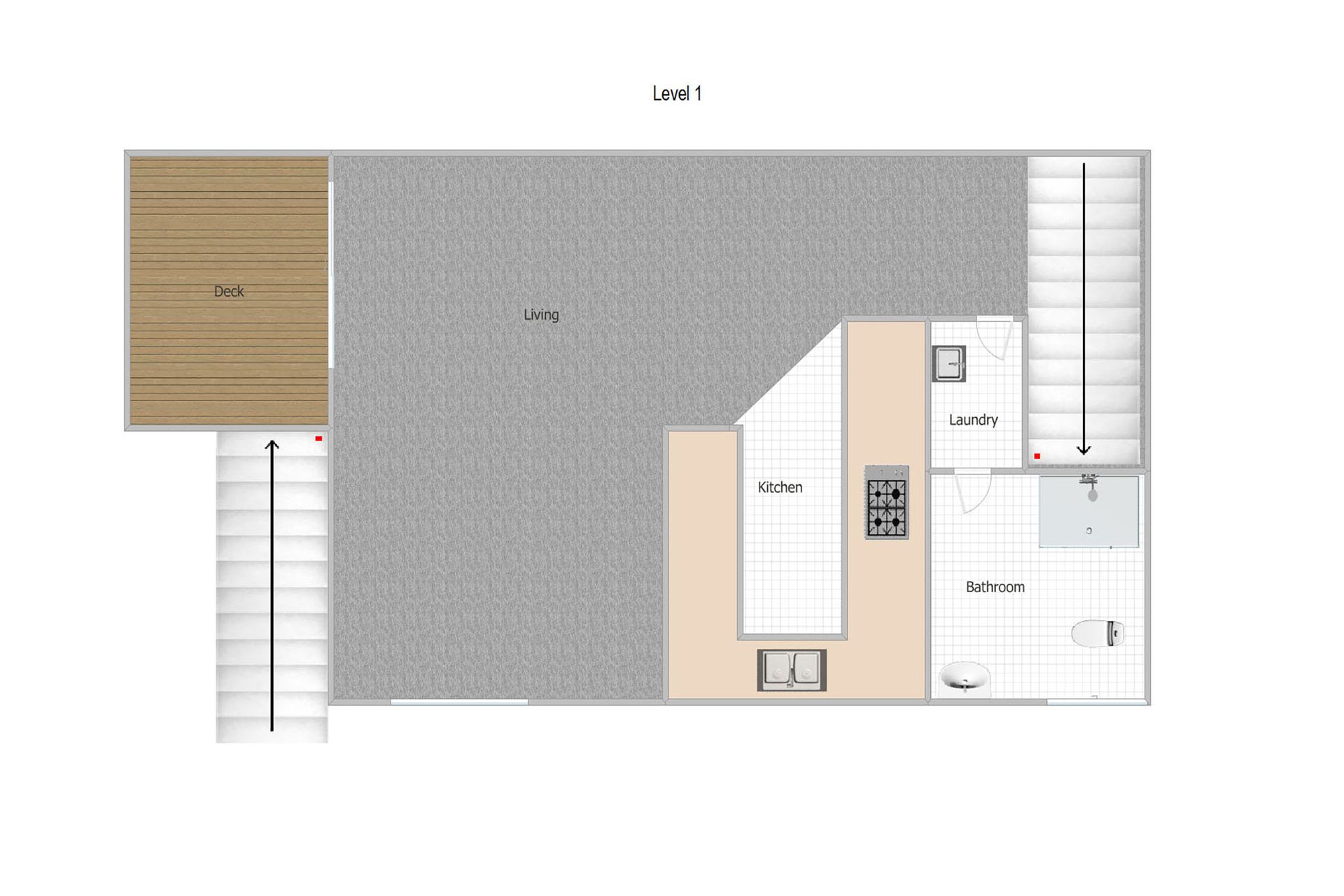 Set on two levels, downstairs features a dining, lounge and kitchen combined, a comfortable cosy space opening out onto a timber deck the ideal spot for an afternoon BBQ.