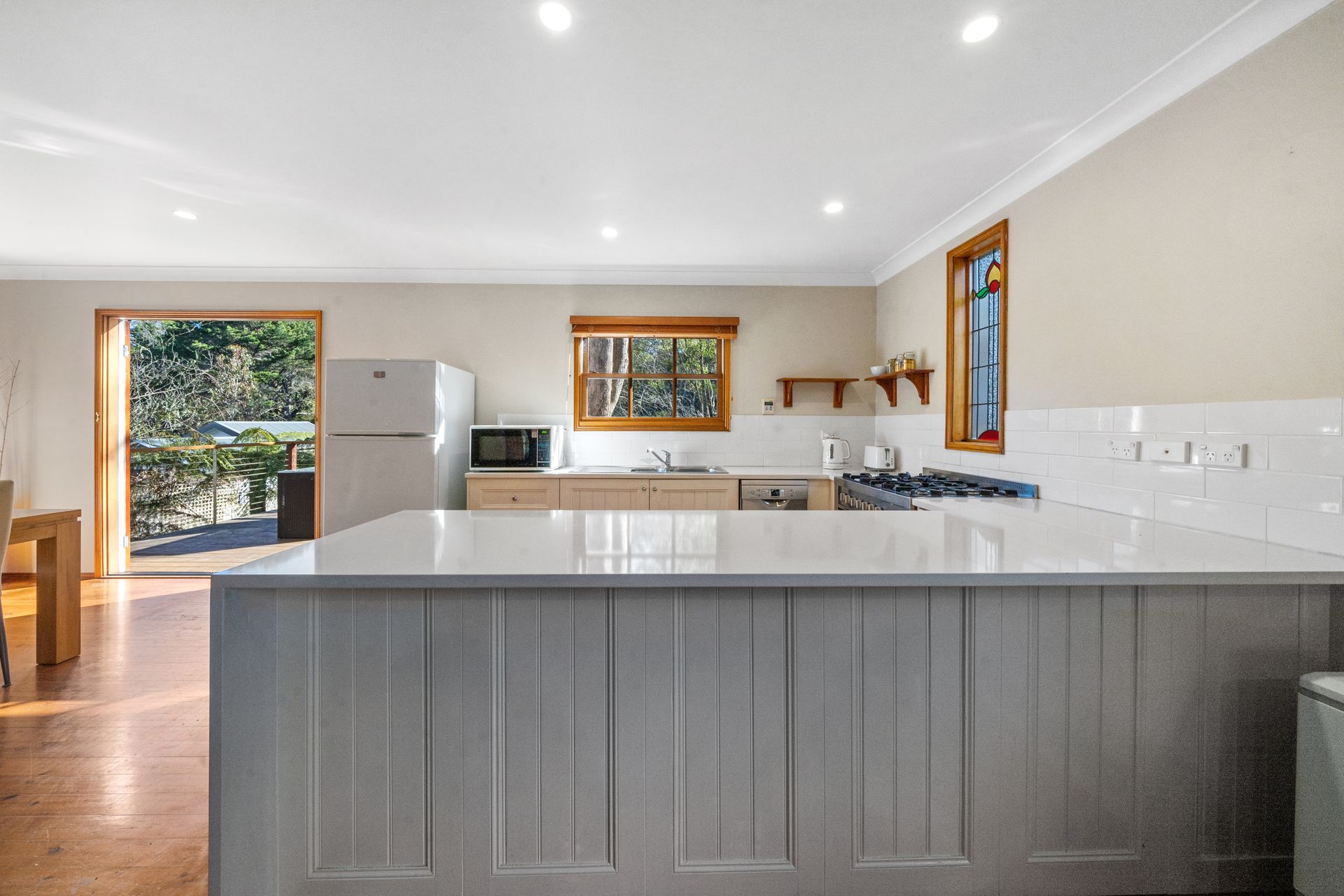 Prepare delicious meals in the fully equipped gourmet kitchen, complete with a large oven, gas stove, and dishwasher. It's perfect for those who love to cook and enjoy home-cooked meals while surrounded by the beauty of the Blue Mountains.