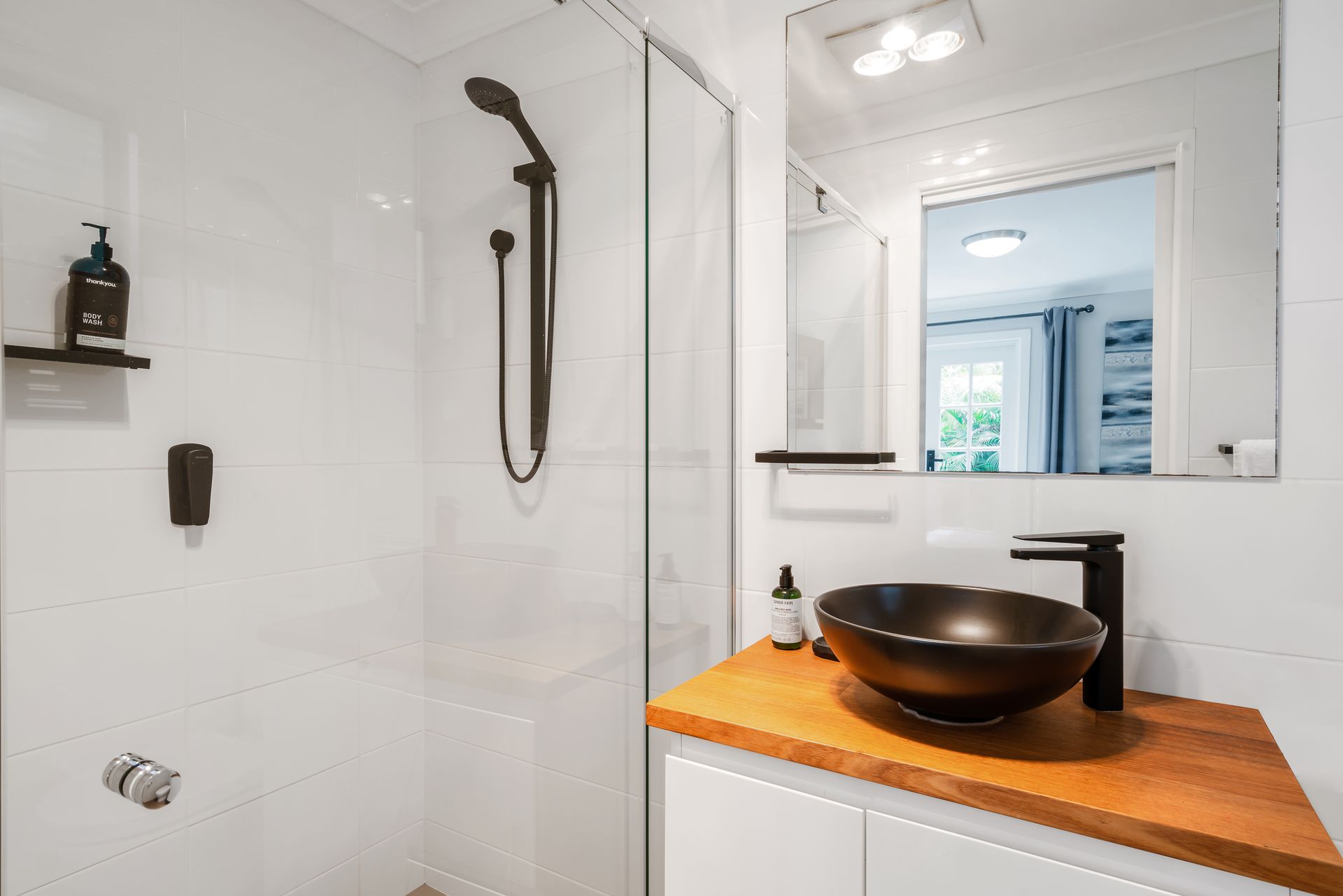 Or just relax on the outdoor deck with a good book and watch the waterfront comings and goings, sea eagles soaring overhead and bush turkeys fossicking in the undergrowth.