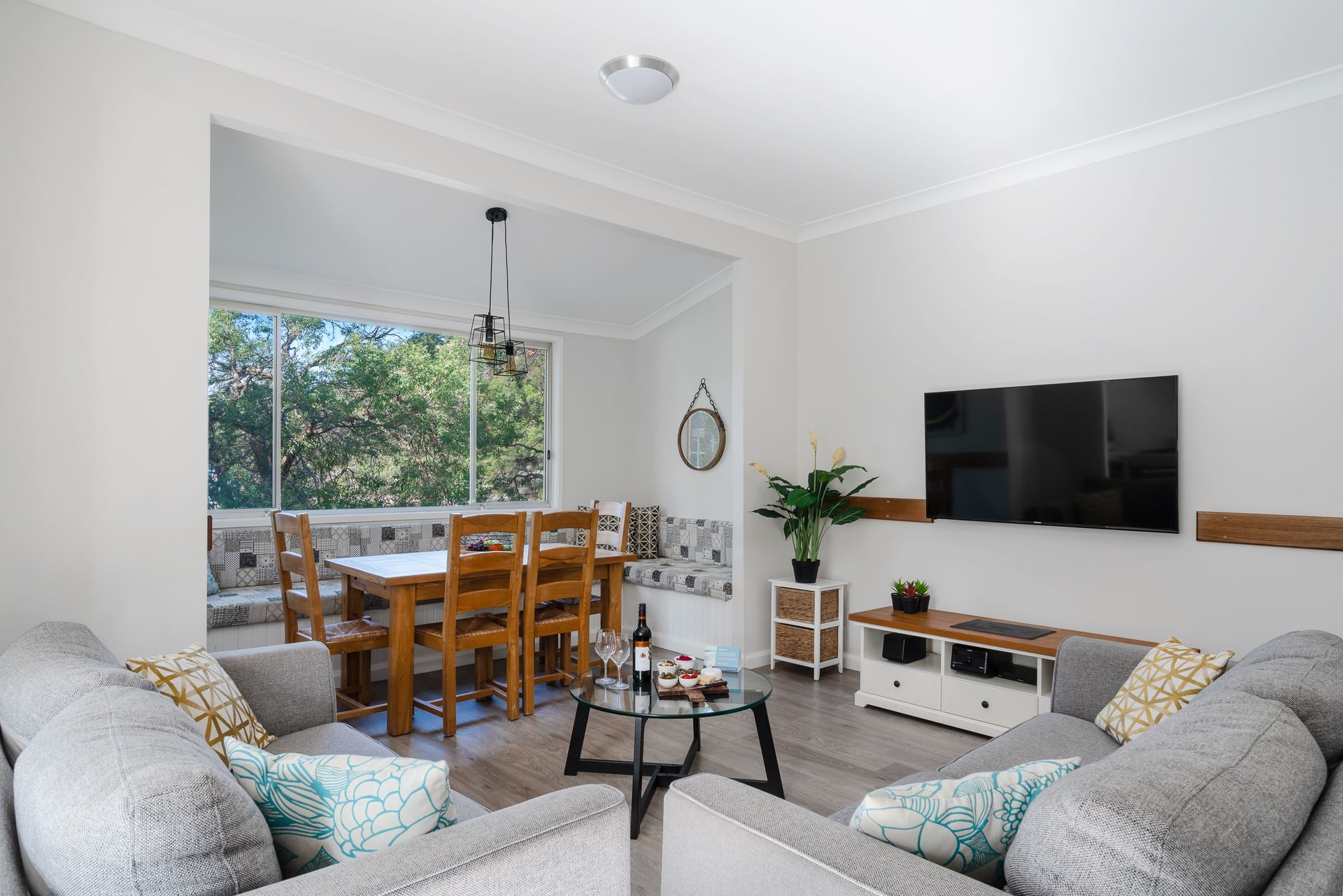 The open plan living, dining and kitchen is bright and airy. There is a lovely outdoor deck area overlooking the waterway with a BBQ, outdoor lounge and dining table. You also have access to the swimming pool and two secure parking spots at the Kuring-Gai Motor Yacht Club.
