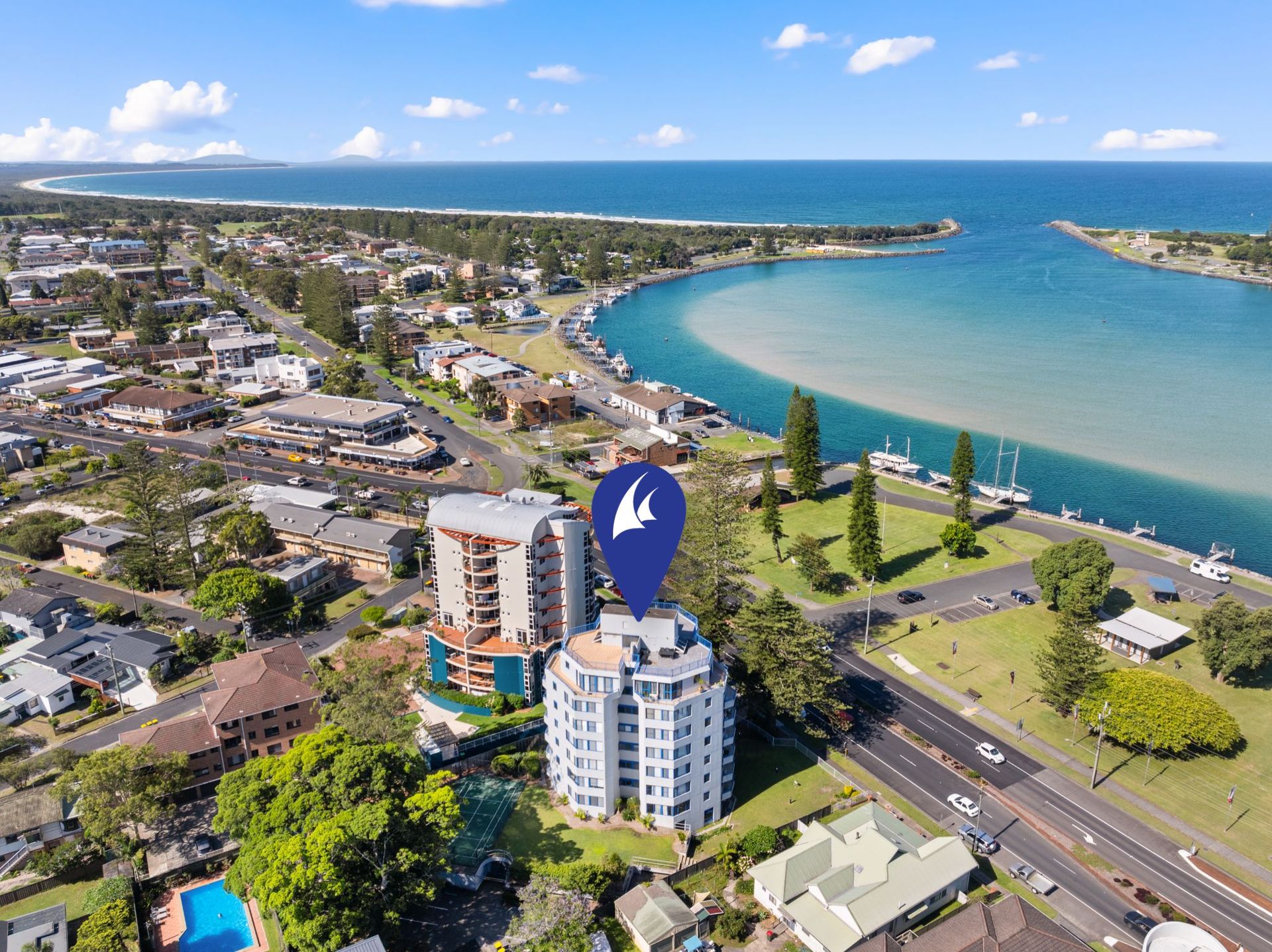 Just across the bridge in Tuncurry, the Heritage complex with lift, swimming pool & half tennis court is the perfect setting for this lovely holiday apartment with water views and spacious balcony.