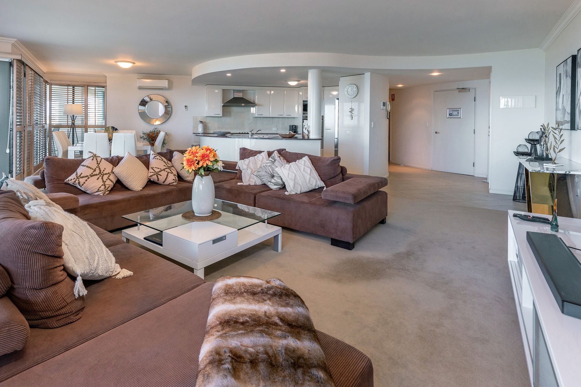 This magnificent 3 bedroom apartment is situated on the 7th floor of the popular Le Point Apartments. Features ensuite and walk in robe to main bedroom, spa bath in master bathroom, modern kitchen with ice making fridge, dishwasher and quality fittings and utensils. The spacious lounge and dining rooms open onto large wrap around balconies with spectacular views of Pebbly Beach and the Pacific Ocean.