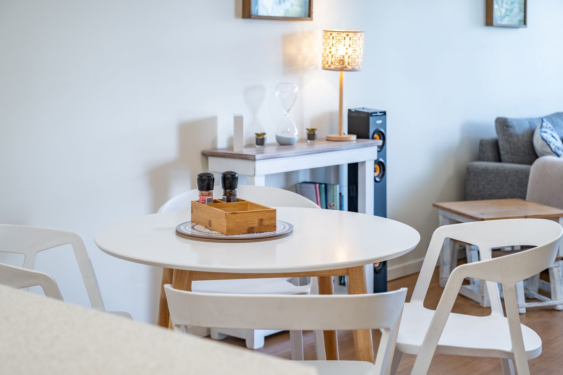The apartment has been styled with bright and refreshing furnishings with views of the waterfront from the balcony and lounge room. Reverse cycle air conditioning, ceiling fans in the lounge, dining and bedroom and waterfront breezes from the balcony, offers comfort year round. All of the linens are supplied for the Queen bed and towels are ready for the bathroom, you just need to bring along your own beach towels. A computer desk and Wifi is available for your convenience, a popular feature for those who want to keep on top of their emails or social media on their getaway and of course to unwind with streaming your favourite shows to the smart TV in the loungeroom or to stream your favourite Spotify playlist on the Bluetooth speaker tower.