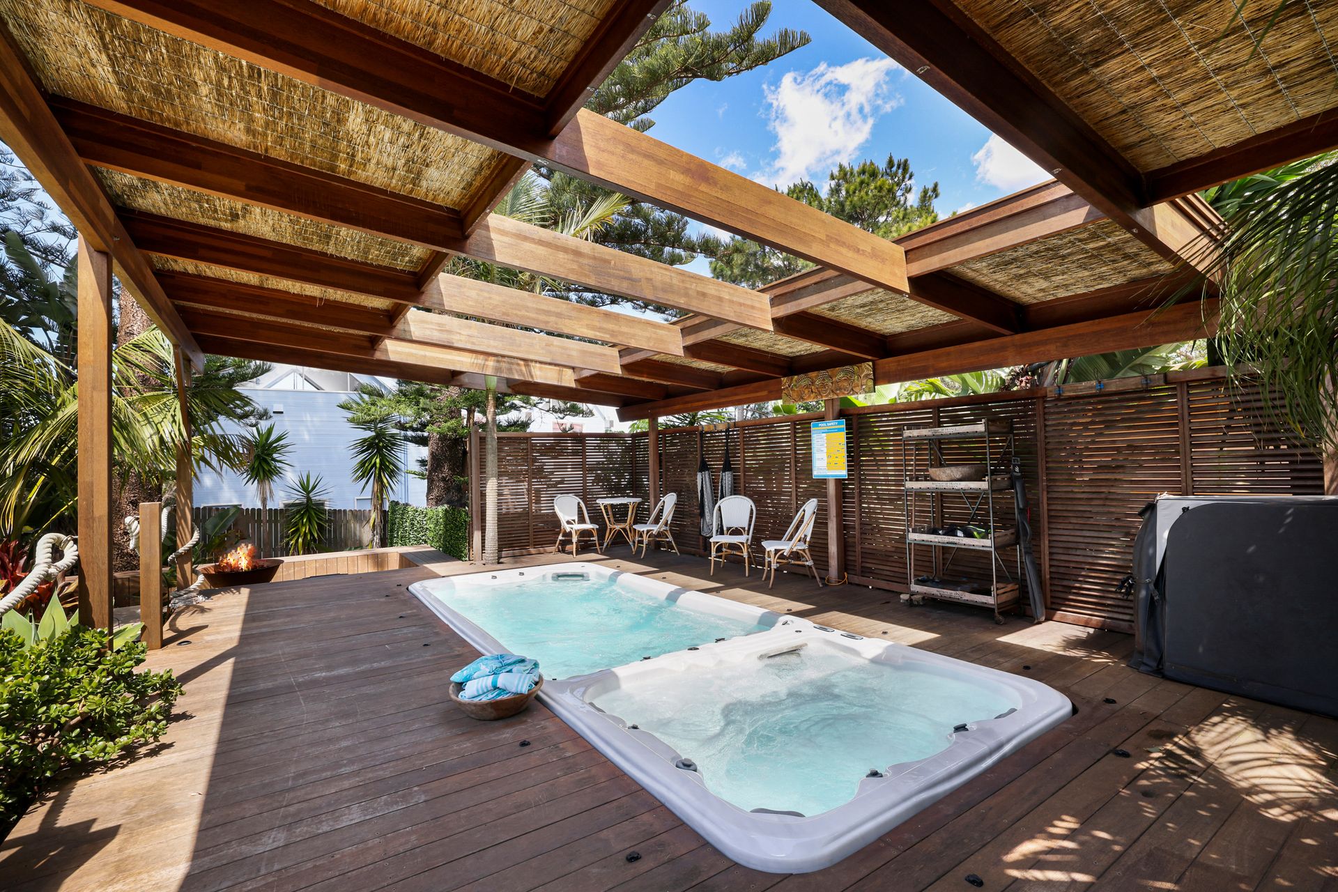 After a day at the beach (5 minute walk) of exploring the sights of Mona Vale, unwind in the soothing spa or just cozy up under the stars by the outdoor fireplace. The outdoor barbecue setup and dining area sets the perfect ambiance for memorable family dinners.