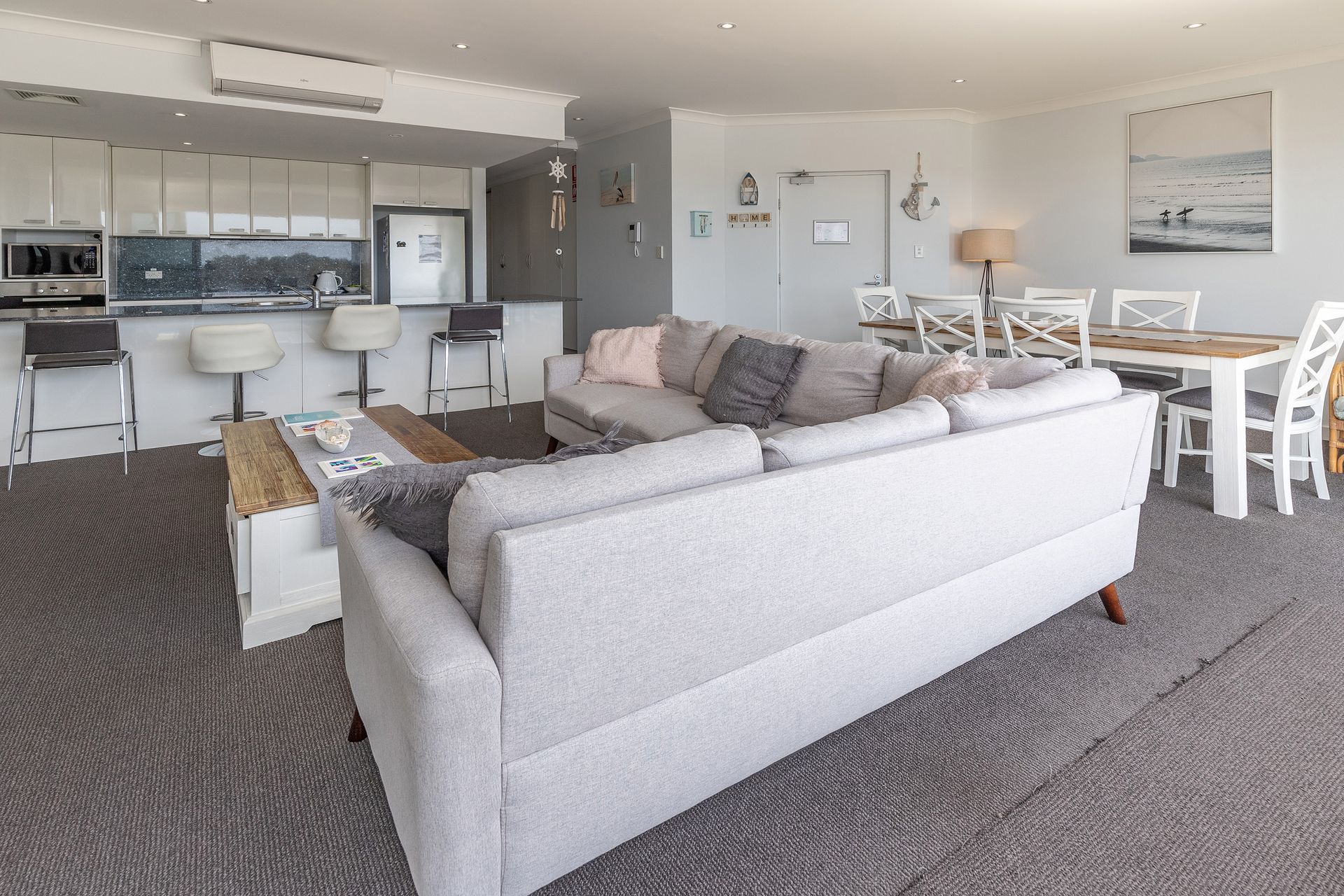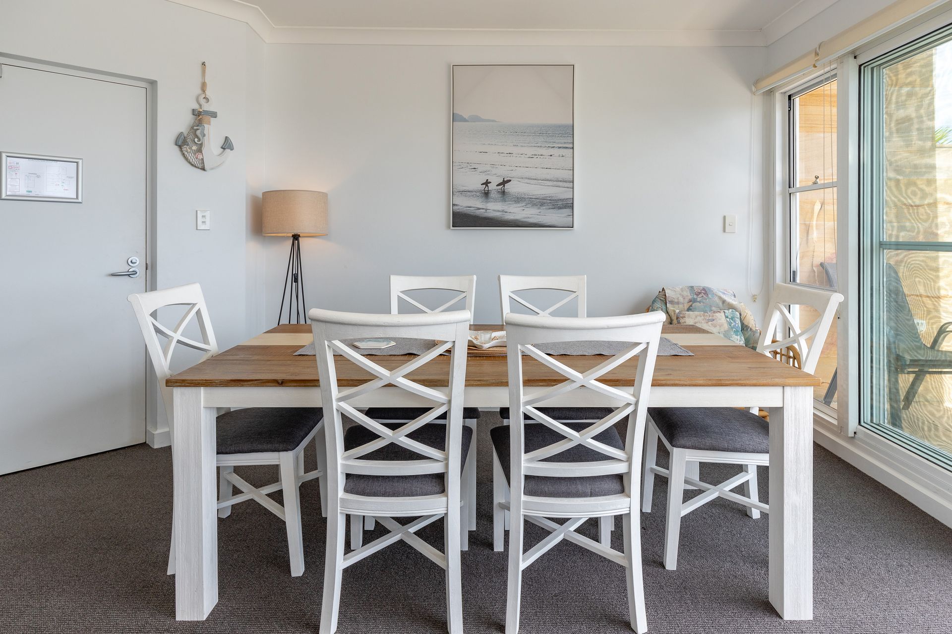 The open plan lounge, dining and kitchen is the heart of this home, with tastefully furnished pieces to sit back and theres air conditioning to keep cool or warm year round. The main bedroom has a King bed and the second bedroom has a tribunk including a single on top of a double bed, all providing linens and towels ready for the bathroom, you just need to pack your own beach towels.