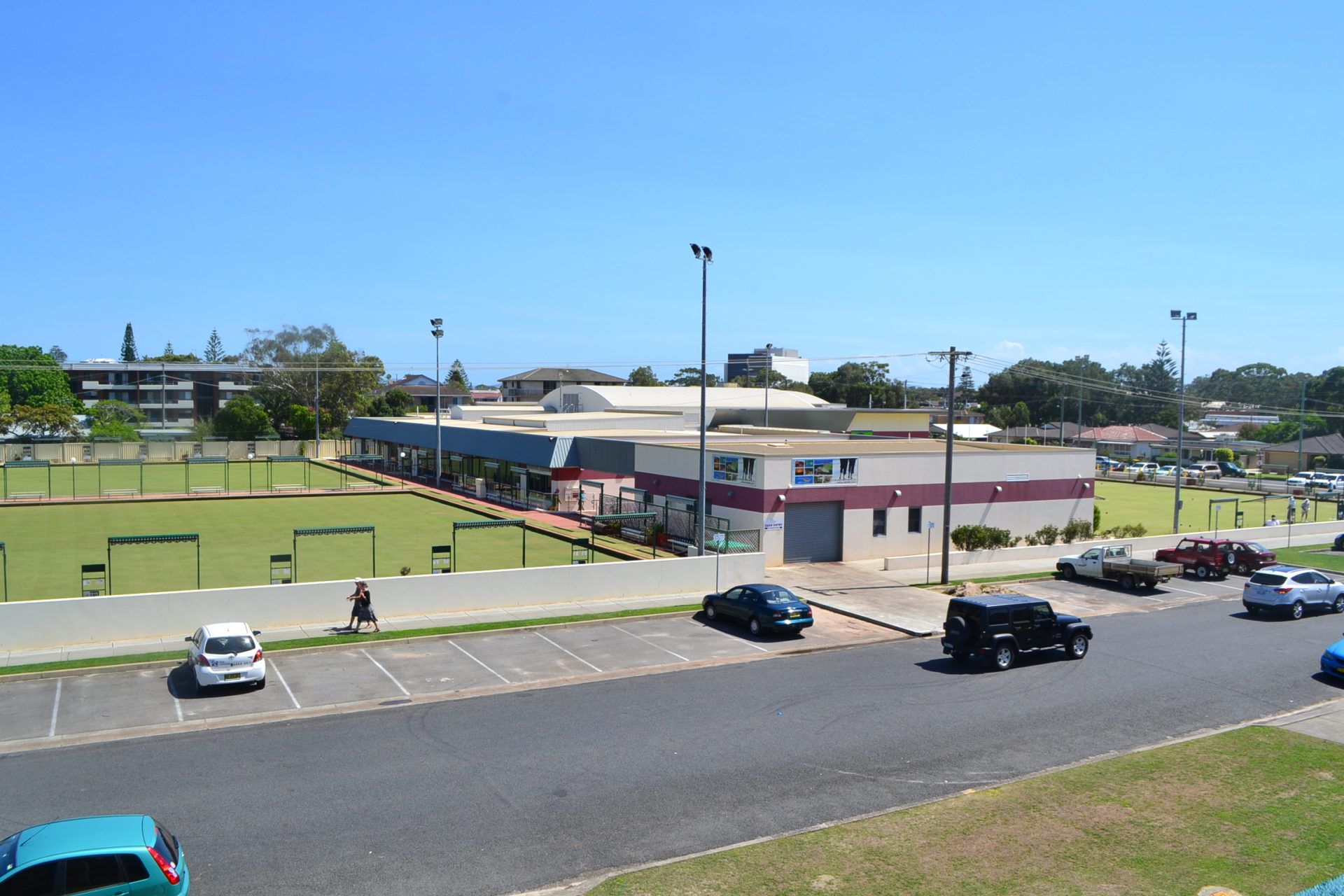 Second floor apartment over looking Tuncurry Bowling Club. Comfy couches to relax and watch TV in the open plan living/dining area. Sliding doors open onto the private balcony looking out to the bowling greens.