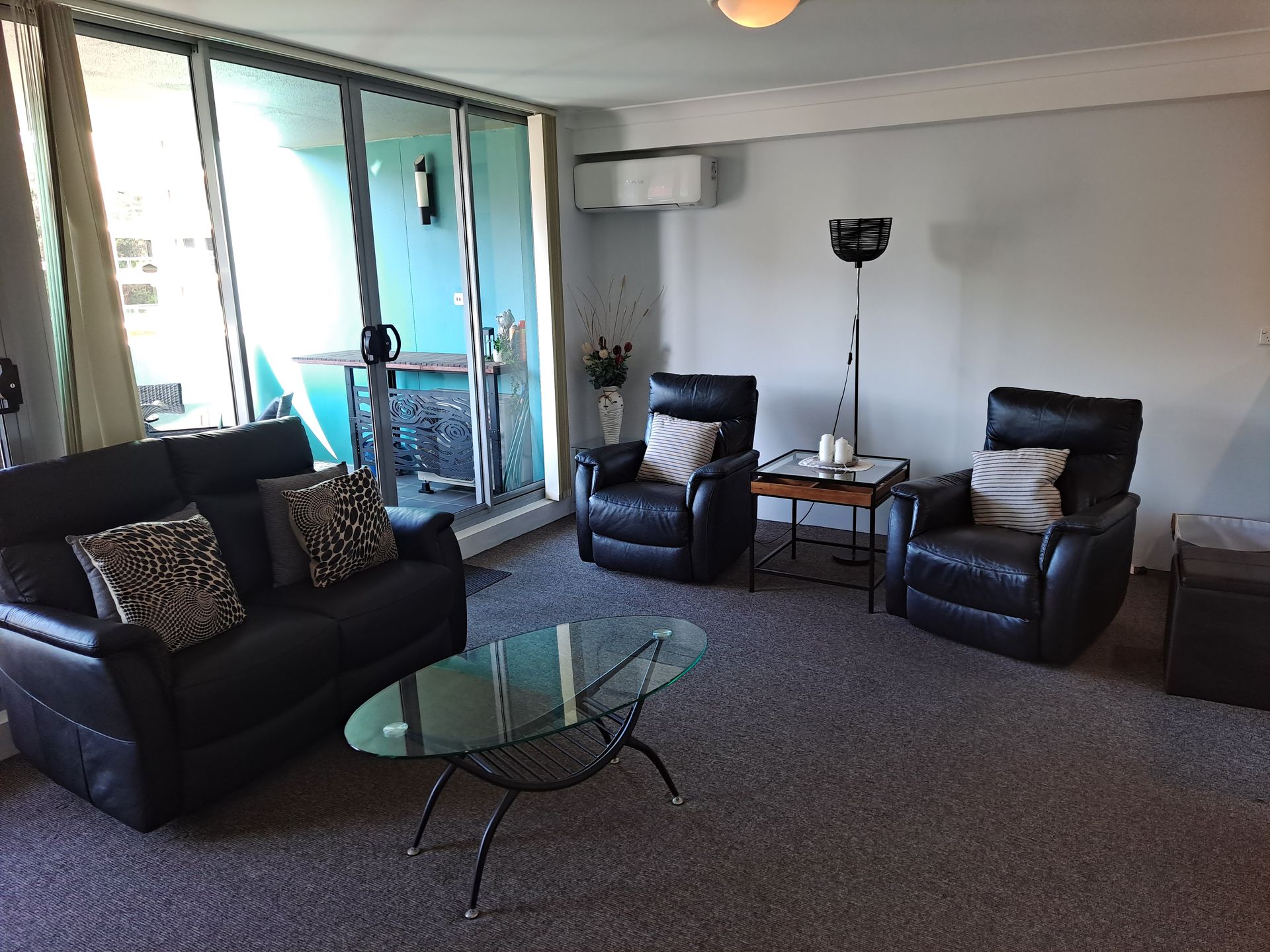 Third-floor, one bedroom apartment with spacious balcony. Relax in the leather recliners after a day of surfing, swimming and exploring the lake system. Fully equipped kitchen or walk to cafes and restaurants. Internal laundry with washer and dryer. Linen is not supplied but can be hired for you stay.