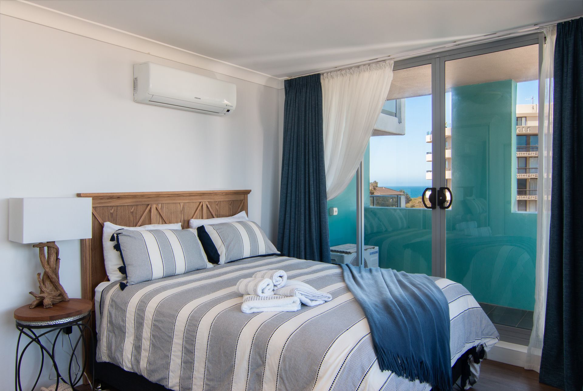 The air conditioned master bedroom has a queen bed and access onto its own balcony is complete with ensuite. The second bedroom has two single beds and also opens to the balcony. Crisp white linen and fluffy towels are supplied for your stay but don't forget to bring along some beach towels.