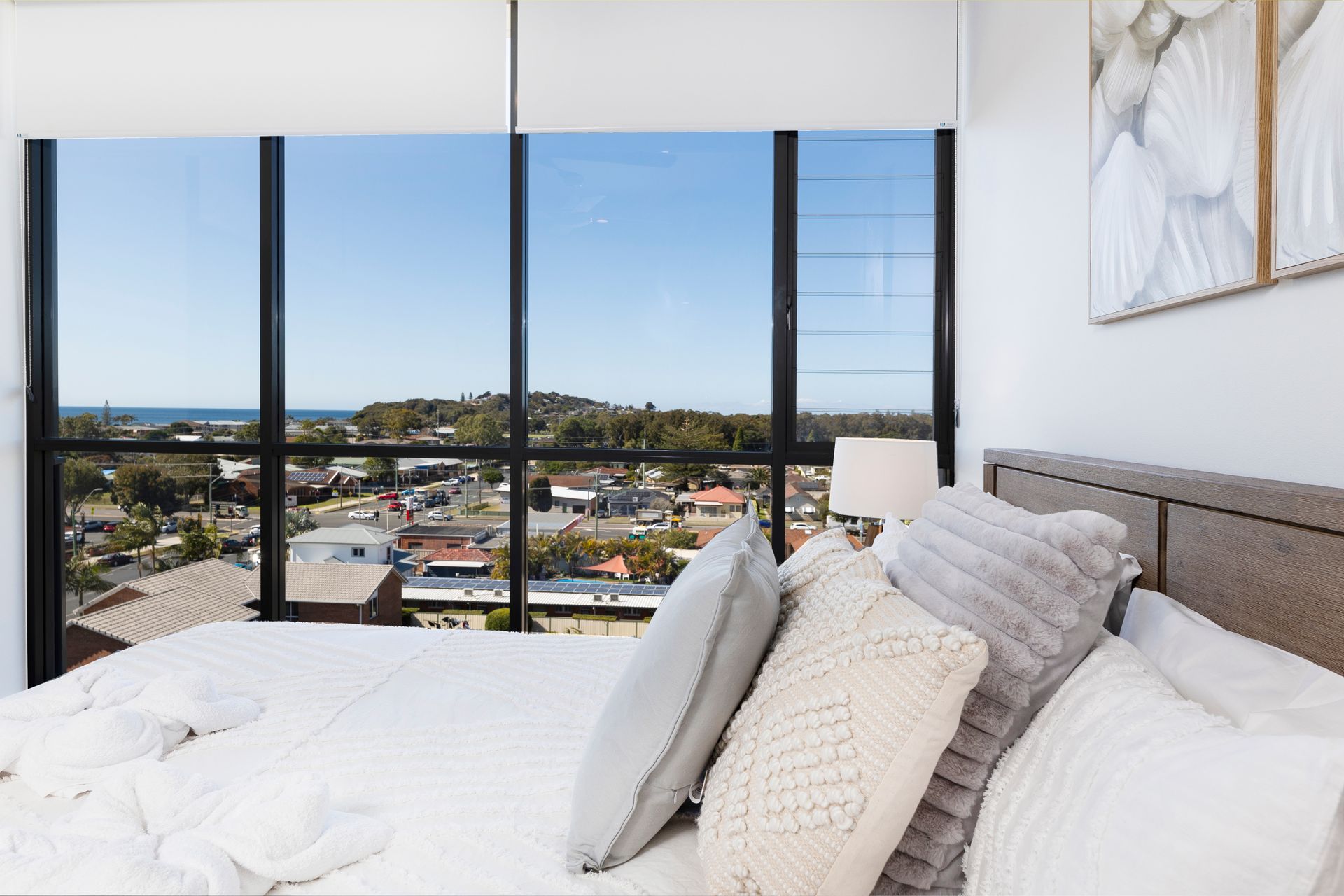 This modern apartment in central Forster comes with all of the modern features to compliment a great escape, including Wi-Fi, dishwasher, washing machine and dryer, and a fully equipped kitchen, making it either a great base to explore the local area or comfortable to just unwind around and overlook the ocean.