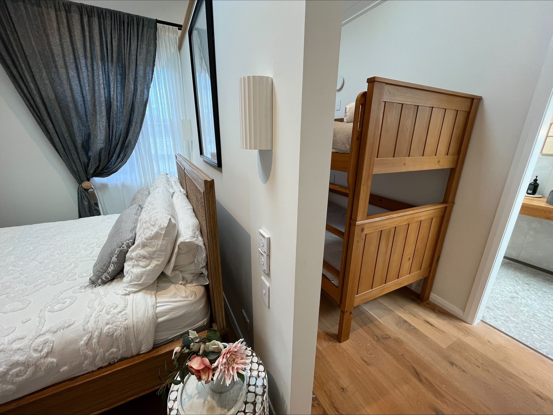 A set of bunk beds have been installed tucked in behind the main bedroom, to ensure you can bring the little ones along for a fun filled weekend in Tea Gardens